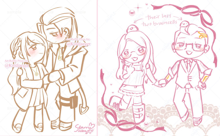 A simple, silly, superr cute chibi style, perfect for your favourite duo/ship! Are two characters not enough? Order up extra characters at 7 USD each and turn it into a trio, four, or five-stack! Thats enough...right?Want them to look even cuter? Add decorations for just 3 USD!