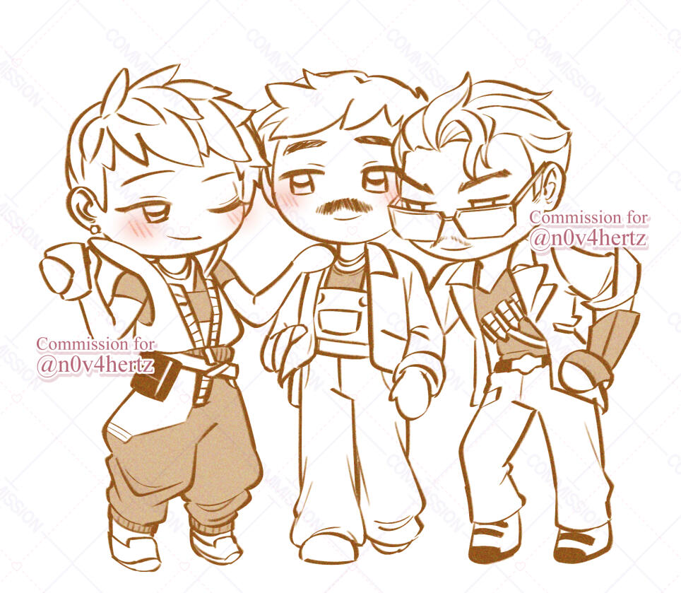 A simple, silly, superr cute chibi style, perfect for your favourite duo/ship! Are two characters not enough? Order up extra characters at 7 USD each and turn it into a trio, four, or five-stack! Thats enough...right?Want them to look even cuter? Add decorations for just 3 USD!